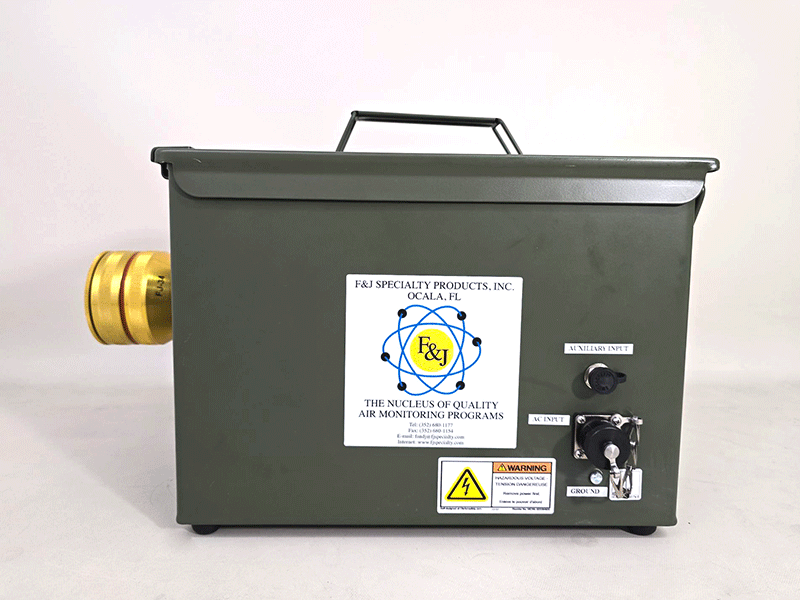 The automatic flow control feature with the F&J Digital Flowmeter technology provides maximum flexibil-ity for emergency response sampling responsibilities. The set flowrate is maintained automatically in case of dust loading and does not require operator attention. The air sampler is contained in a rugged, metal, small dimensioned enclosure which is water tight. The unit can be carried very easily by its metal handle.