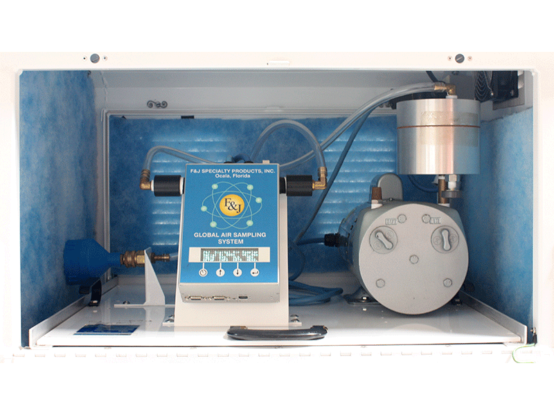 The Model GAS-2234 Global Air Sampling System is a microprocessor controlled low volume air sampler consisting of an oil-less, carbon vane vacuum pump, with a constant airflow regulator for use where a nearly constant airflow is desirable. The regulator holds a constant pressure drop across an in-line orifice, by varying the flow through a bypass valve into the pump. This system allows the pump to work at a minimum head drop at all times, permitting it to run cooler, thus extending its service life. The oil-less pump requires no lubrication to maintain optimal efficiency during its service life. The pump is mounted on a removable base plate. WH-3 has an enclosure rating of IPX3 and is powder coat paint protected.